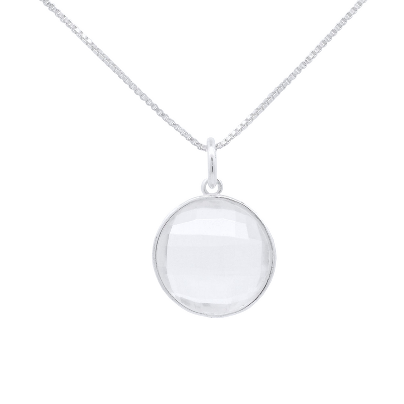 Filigrane Kette Sterling 925 Silber mit einem runden Bergkristall-Anhänger als Highlight.Durchmesser: 16 mm