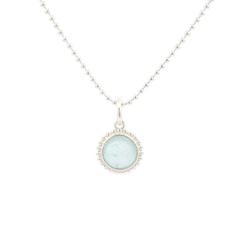 Die Halskette Kalea vereint Eleganz mit einer sanften Wirkung. Der zarte Aquamarin-Anhänger, eingebettet in vergoldetes Silber, strahlt Ruhe und Klarheit aus. Mit seinen himmelblauen Tönen symbolisiert der Stein Gelassenheit und Balance – perfekt für einen harmonischen Look. Ob als alltäglicher Begleiter oder stilvolles Accessoire für besondere Anlässe: Kalea setzt ein feines, edles Statement.