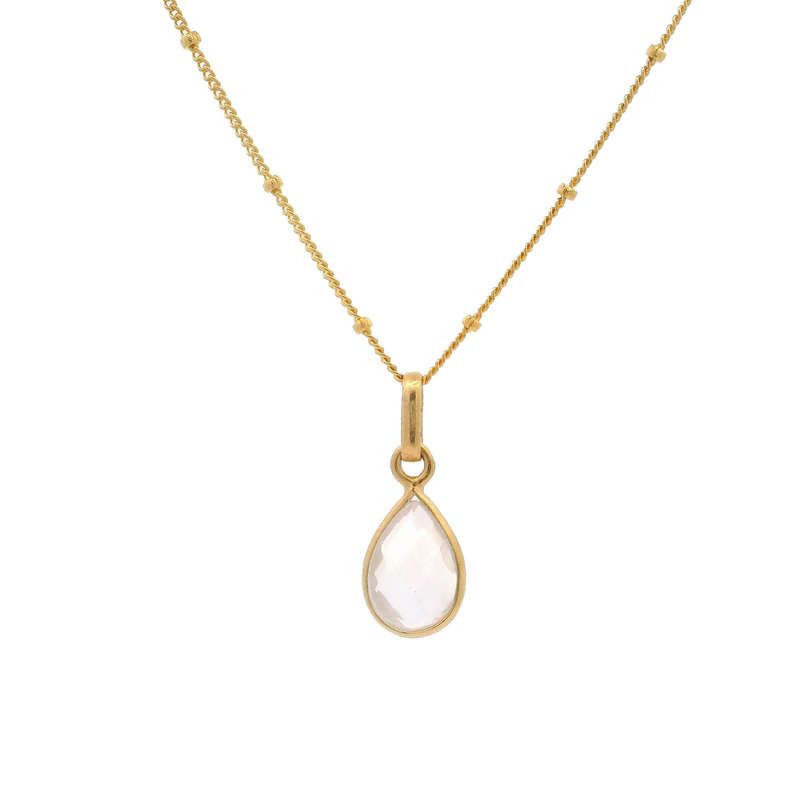 Die Halskette Lily besteht aus einem facettierten Rosenquarz-Anhänger und einer fein getupften Silberkette.