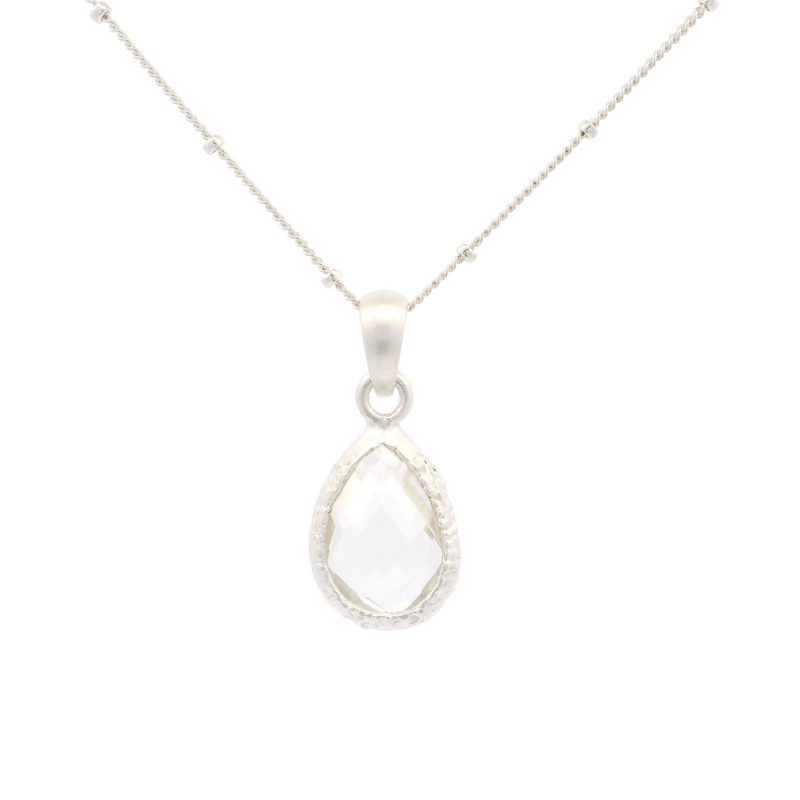 Eine wunderschöne und filigrane Halskette mit einem eingefassten und facettierten Bergkristall als Highlight.