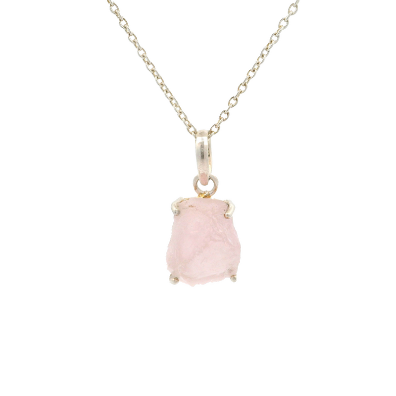 Schön und besonders. Der Rosenquarz der Halskette Stone ist mit seiner Rohfassung etwas ganz Besonderes und jeder Edelstein ist einzigartig.