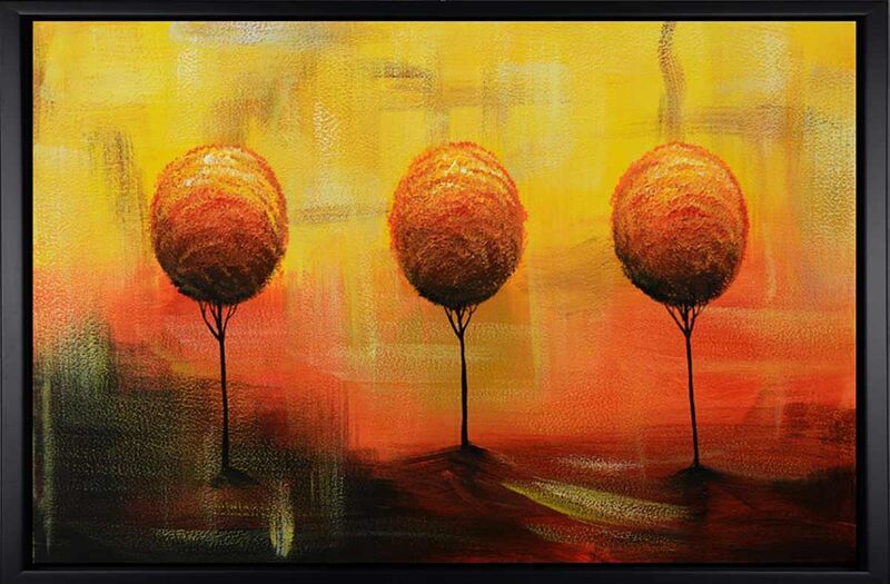 Handgemaltes Ölgemälde (Landschaften) – "Tree Threesome" (mit schwarzem Rahmen)