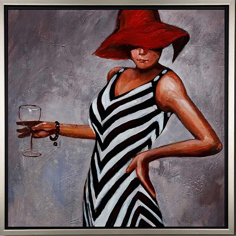 Versuch es! Handgemaltes Ölgemälde (Portraits) – "Let’s Party" (mit silbernem Rahmen)