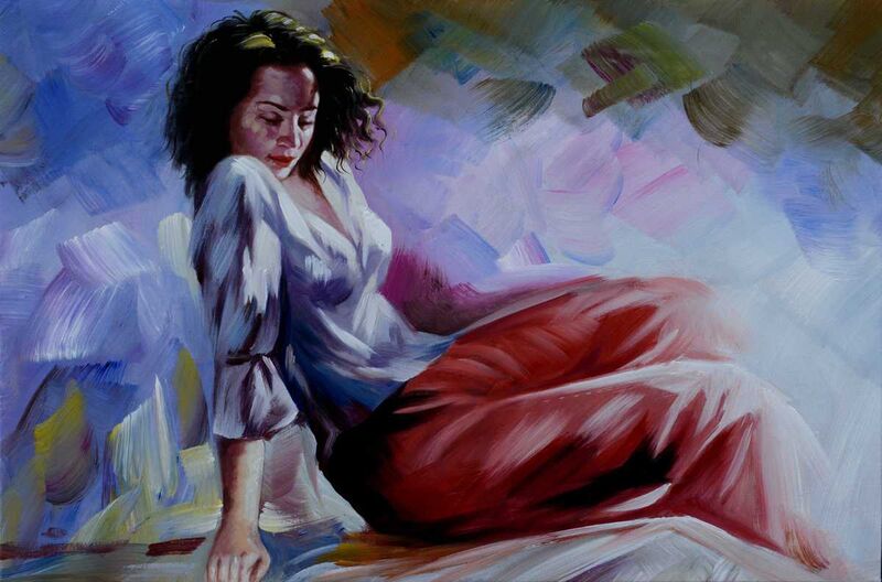 Versuch es! Handgemaltes Ölgemälde (Portraits) – "Lost in Thought"