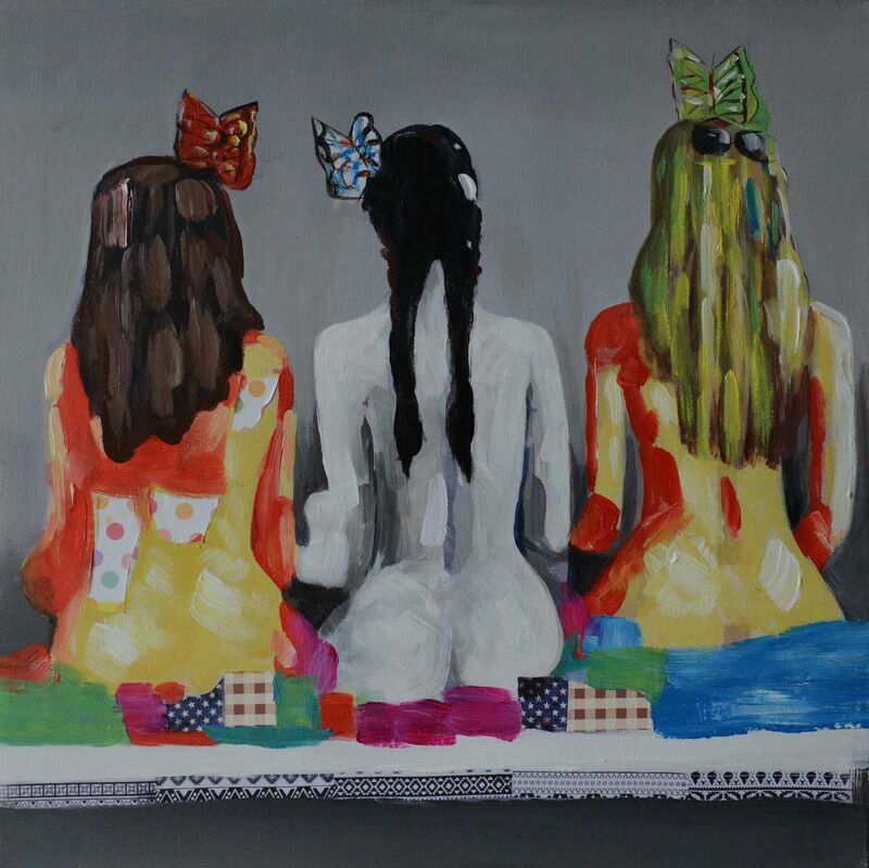 Versuch es! Handgemaltes Ölgemälde (Portraits) – "Three Girls in a Row"