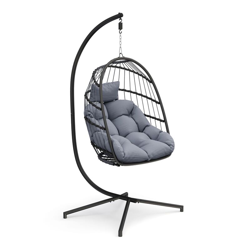 Der freischwingende Eierkorb mit Hängegestell verspricht Gemütlichkeit und Entspannung. Ob drinnen oder draussen – der Sessel lässt sich überall platzieren, wo Sie sich gerade wohl fühlen. Bei Nichtgebrauch falten Sie ihn mit wenigen Handgriffen zusammen für eine platzsparende Verstauung. Kuscheln Sie sich jetzt in die weichgepolsterten Kissen dieses hochwertigen Hängesessels und nehmen Sie sich eine Auszeit!