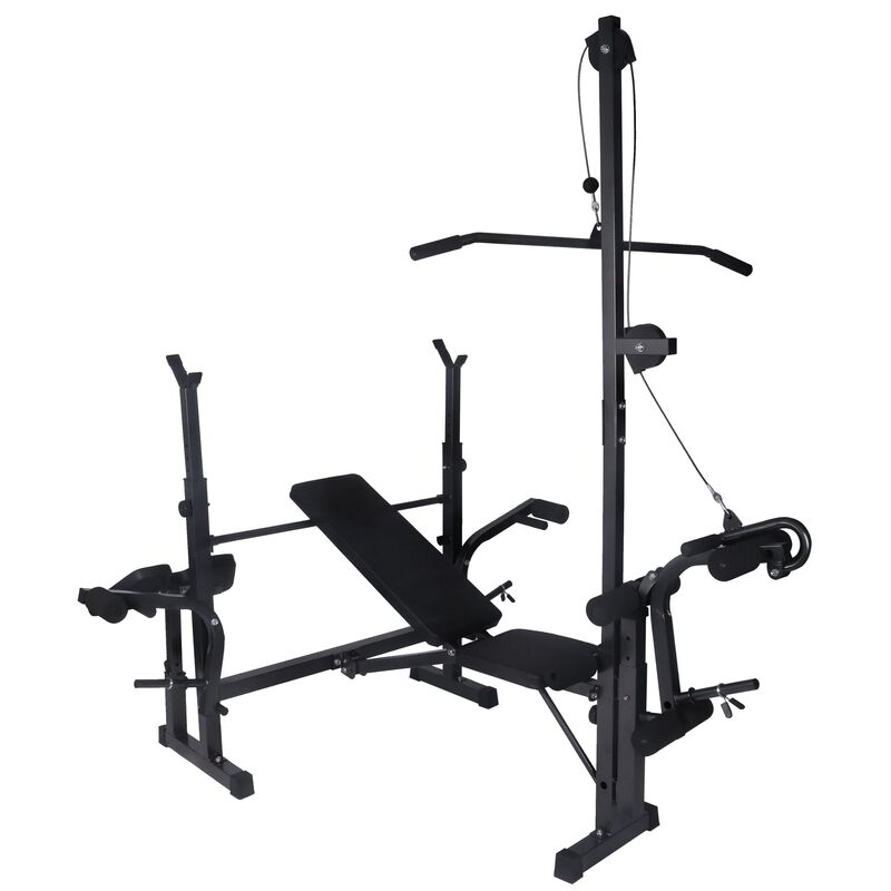 Workouts sind nicht nur was für Muskelprotze, sondern sorgen auch für gesunde Körper. Egal, ob du bereits regelmässig trainierst oder erst noch deinen Neujahrsvorsatz ausleben musst: Mit diesem multifunktionalen Fitnessgerät kommen alle auf ihre Kosten. Die Kraftstation verfügt über eine praktische Langhantelablage, ein höhenverstellbares Rack und seitliche Ablagen für Hantelgewichte. Mit dem integrierten Latzug und der Butterflyvorrichtung kannst du deine Arm- und Schultermuskulatur gezielt kräftigen. Worauf wartest du noch? Setzte deine Fitnessvorhaben noch heute um, mit dieser cleveren Hantelbank in Schwarz!