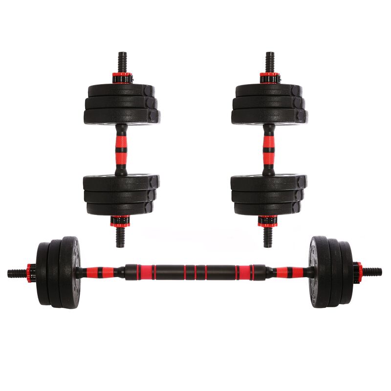 - Kann dank Verbindungsstück zu einer Langhantel umgebaut werden