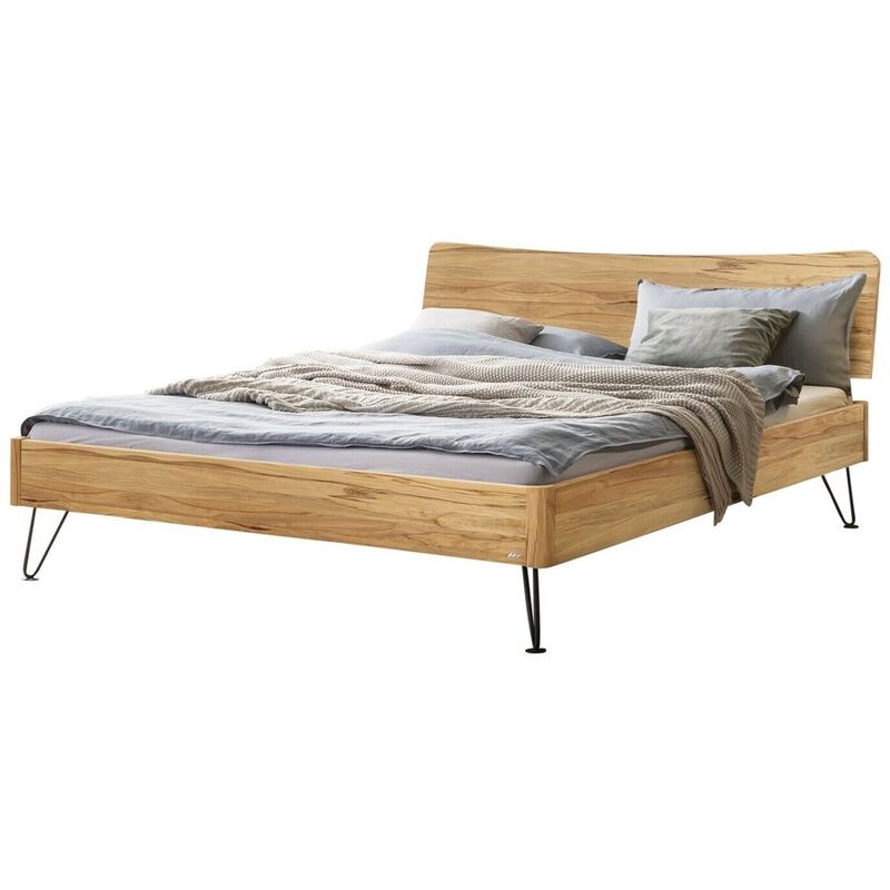 Bettgestell 140x210cm, Metall anthrazit, Wildbuche natur geölt