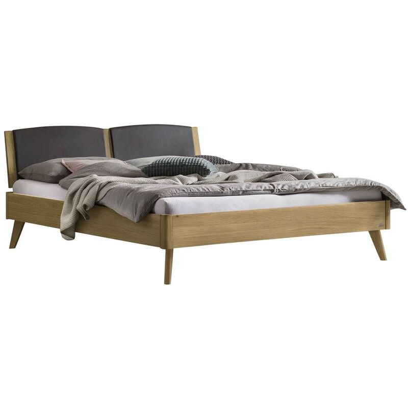 Bettgestell 140x200cm Eiche bright geölt, Bezug Kunstleder smoke