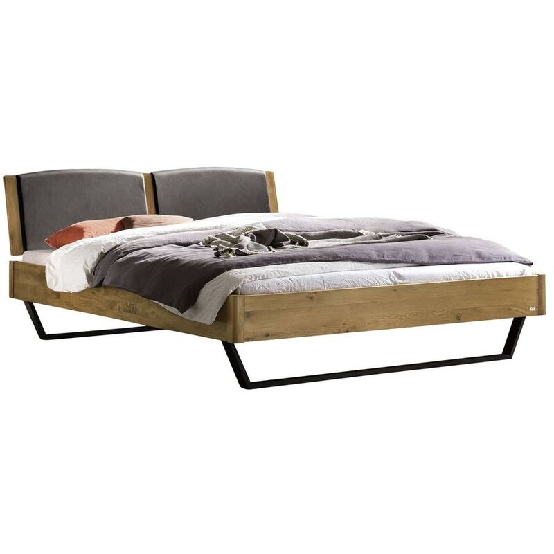Bettgestell 160x210cm, Metall anthrazit, Wildeiche natur geölt, Bezug Kunstleder smoke