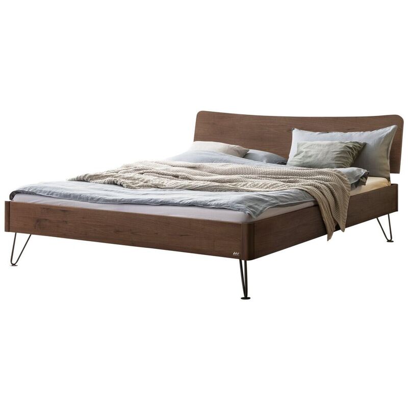 Bettgestell 140x200cm, Metall anthrazit, Nussbaum geölt