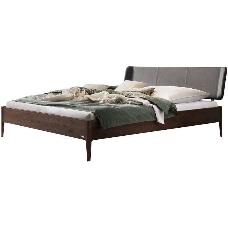 Bettgestell 180x200cm Nussbaum geölt, Bezug Kunstleder smoke