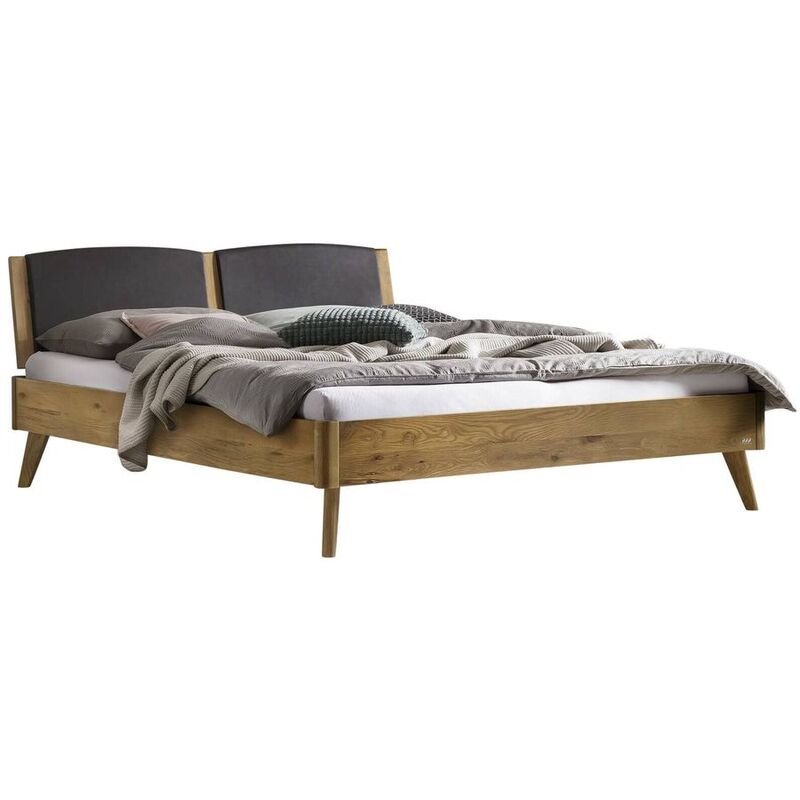 Bettgestell 140x200cm Wildeiche natur geölt, Bezug Kunstleder smoke