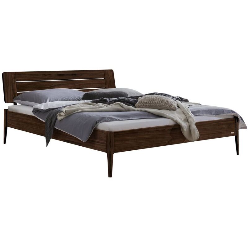 Bettgestell 140x210cm Nussbaum geölt – Bett Castello – B 140 T 210 H 85 cm – Stellmass: 146 x 226cm, Fusshöhe: 25cm, Einlegetiefe: 18 cm – Bettrahmen, Füsse, Kopfteil