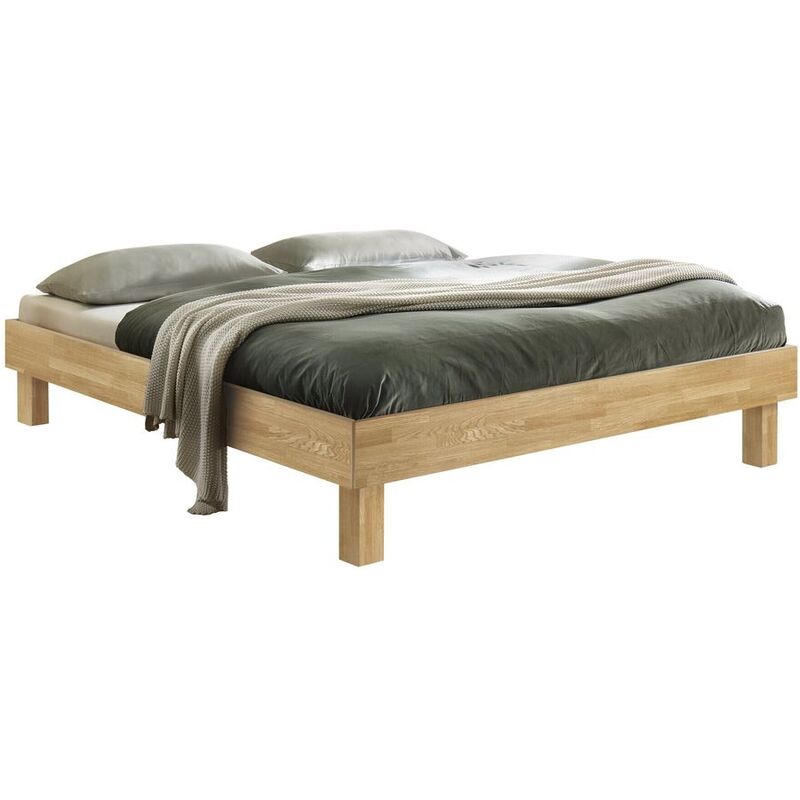 Massivholz-Bett – Bett Ferizeya – Eiche – B 200 T 200 H 41 cm – Stellmass: 206x205cm, Bettunterkante: 25cm, Einlegetiefe: 16cm – Ohne Bettinhalt (Matratze / Einlegerahmen) und exkl. Nachttisch