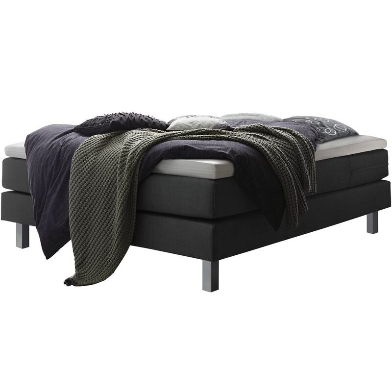 Boxspringbett mit Visco-Topper medium, Agrea-Top – Boxspringbett Basio – Eiche – B 180 T 200 H 62 cm – Stellmass: 180 x 200cm, Visco-Topper RG 50, 8cm hoch – Matratze: 900 Taschenfedern; Wattierung 100% PES; Topper: Bezug 100% PES, Füllung 100% Klimawatte; Box: 336 Bonellfedern