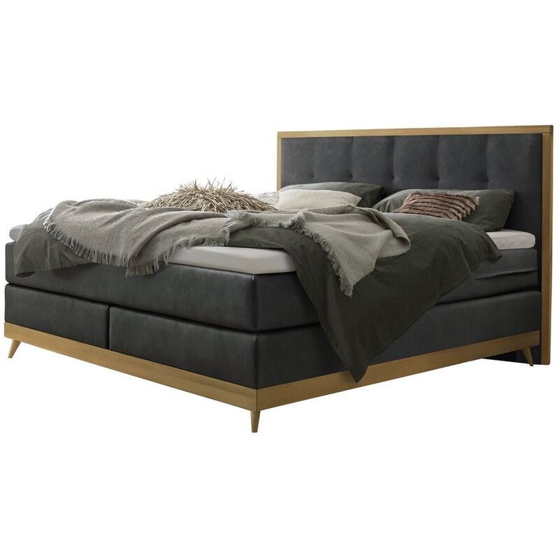 Boxspringbett mit PU-Schaum-Topper fest, Base-Top – Boxspringbett Villa – Eiche – B 180 T 200 H 125 cm – Stellmass: 188 x 205cm, PU-Schaum-Topper, RG 35, 5cm hoch – Matratze: 900 Taschenfedern; Wattierung 100% PES; Topper: Bezug 100% PES, Füllung 100% Klimawatte; Box: 336 Bonellfedern