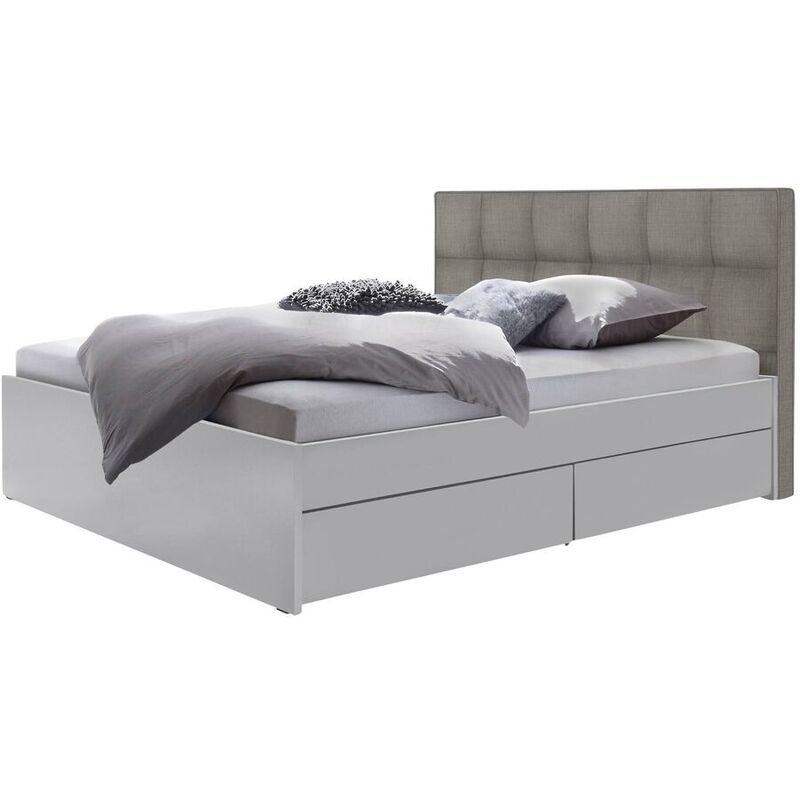 Bett Tip-on 180x200cm weiss grey – Stauraumbett Shepherd – Holzwerkstoff – B 180 T 200 H 122 cm – Stellmass: 188x205x122cm – Bezug Pepe: 100% PES / Lichtechtheit: 5 / Reibeechtheit: 4-5 / Pilling: 5 / Scheuerfestigkeit: 15'000 / Gewicht: 268g/m2 / Frei von allergisierenden Farbstoffen, Azo-Farbstoffen, Formaldehyde und Dimethylfumarate