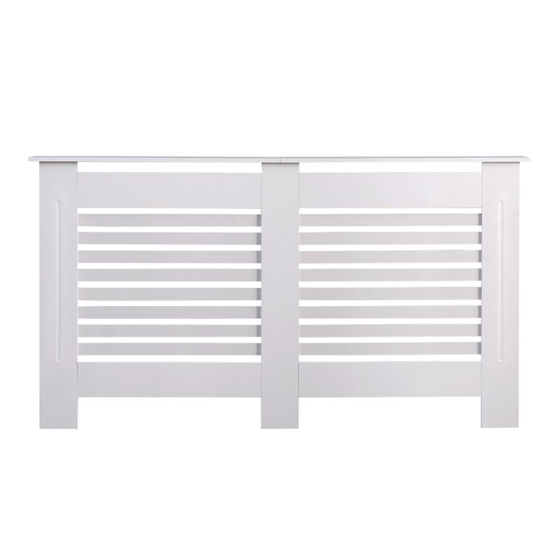 Diese moderne Heizkörperverkleidung lässt Radiatoren mit wenigen Handgriffen verschwinden. Das schlichte Design fügt sich unaufdringlich in deine Einrichtung ein und bietet zusätzliche Abstellfläche für Dekorationsobjekte. Die Lamellen ermöglichen eine gleichmässige Wärmezirkulation im Raum. Vervollständige deine Inneneinrichtung jetzt mit der stilvollen weissen Heizkörperabdeckung aus Holz!