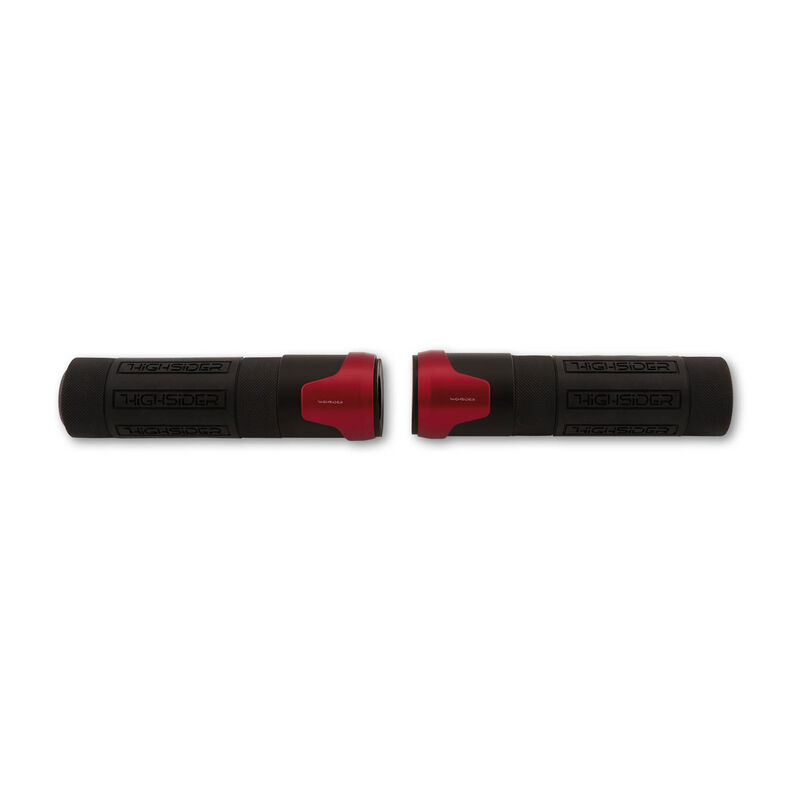HIGHSIDER GRIFFGUMMIS AKRON SCHWARZ, ALURING ROTDie stylischen 7/8 Zoll Lenkergriffe Highsider AKRON schaffen mit der Überlagerung der beiden Alu-Hülsen eine neue Art der Formensprache. Die äussere verkörpert mit ihren Linien zeitloses Design und bildet mit den trapezförmigen Zungen einen schönen Kontrast zu dem darunter liegenden perlgestrahlten schwarzen Aluminiumzylinder. Der Highsider Schriftzug ist in die Griffstruktur eingearbeitet. Die abnehmbaren Endkappen ermöglichen die Montage von Lenkerendenblinker, Lenkerendenspiegel oder Lenkergewichte. Mit den Griffen verpasst du deinem Bike den edlen Highsider-Look und wertest es optisch auf. MASSE: * Passend für 7/8 Zoll (22mm) * Länge: 132mm * Aussendurchmesser Gummi: ca. 34mm * Aussendurchmesser Aluhülse: ca. 37mm LIEFERUMFANG: 1 Paar Highsider,4054783543533,315-0572,lenkergriffe,gummigriffe,griffgummi,handgriffe,klebgriffe,poignees,manopole,grips,motorrad griffe,AKRON,lenkergriffe,gummigriffe,griffgummi,handgriffe,klebgriffe,poignees,manopole,grips,motorrad griffe