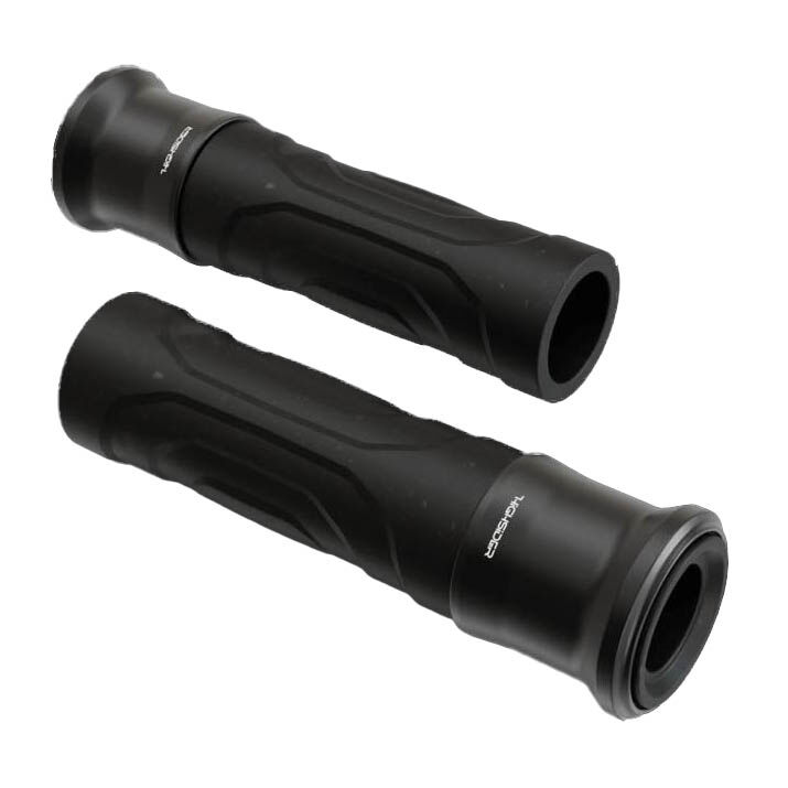 HIGHSIDER GRIFFGUMMIS ESAGANO-RS, SCHWARZSteil und flach verlaufende Trapeze bilden die Grundform der aus Aluminium CNC gefertigten Griffhülsen der Highsider ESAGANO-RS Griffe und schaffen ein futuristisches Design, das damit die Formensprache moderner Motorräder versinnbildlicht. Die markante Griffhülse wird mit einem neuen, ergonomischen Griffgummi und seinem modernen topografischem Design vervollständigt. Zusammen sorgen sie für ein überzeugendes griffiges Ergebnis sowohl im Handling als auch optisch. Der aufgestellte Kragen der Griffhülse sorgt für einen homogeneren Übergang zu den Lenkerarmaturen und gibt dies auch haptisch an deine Hände weiter. Den Abschluss des offenen Lenkerendes kannst du über die beiliegenden schlichten schwarzen Abdeckkappen verschliessen. Wenn du einen selbstbewussteren Abschluss im stimmigen Design suchst bieten wir dir mit den Lenkerenden der ESAGANO-Serie oder aus unserem umfassenden Highsider Produktsortiment eine attraktive Alternative, die dein Bike in Perfektion vollenden und es gekonnt in Szene setzen. MASSE: * Gesamtlänge: 125mm * Aussendurchmesser Gummi: ca. 32mm * Aussendurchmesser Aluhülse: ca. 40mm * Innendurchmesser Gummi 1: ca. 20mm * Innendurchmesser Gummi 2: ca. 23mm * Passend für 7/8 Zoll (22.2mm) LIEFERUMFANG: 1 Paar ESAGANO-RS,lenkergriffe,gummigriffe,griffgummi,handgriffe,klebgriffe,poignees,manopole,grips,motorrad griffe