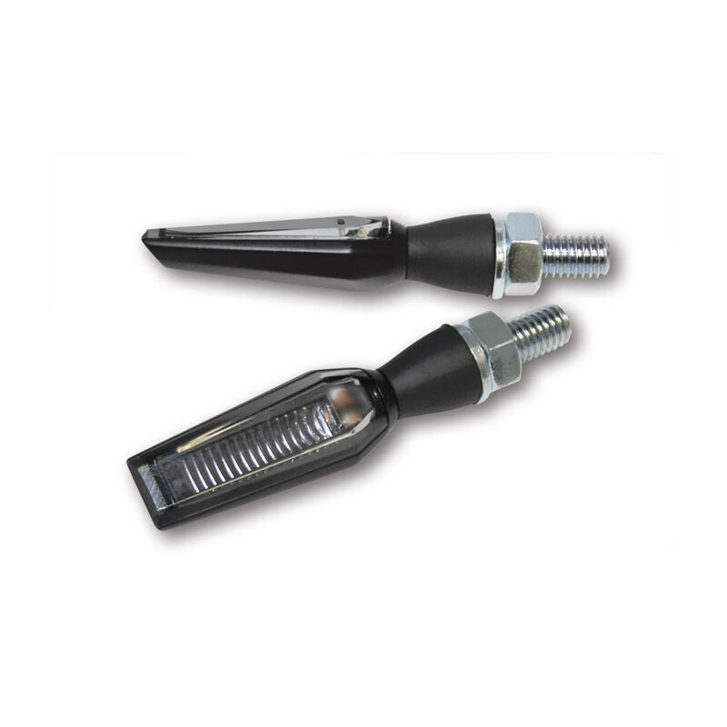 HIGHSIDER LED BLINKER FALCON, SCHWARZBei dieser innovativen Beleuchtungstechnik ist die Lichtquelle (3W LED) nicht sichtbar. Das Licht wird über eine speziell gefertigte Reflektorschiene umgeleitet und tritt nach vorne aus. Metall-Gehäuse mit Gummistiel, klares Glas, E-geprüft. ABMESSUNGEN: * Breite: 60mm * Höhe: 13mm * Gewindebolzen: M8 LIEFERUMFANG: 1 Paar, E-geprüft für vorne und hinten HINWEISE: Der Blinker darf nicht ohne die mitgelieferte Elektronik-Box betrieben werden.