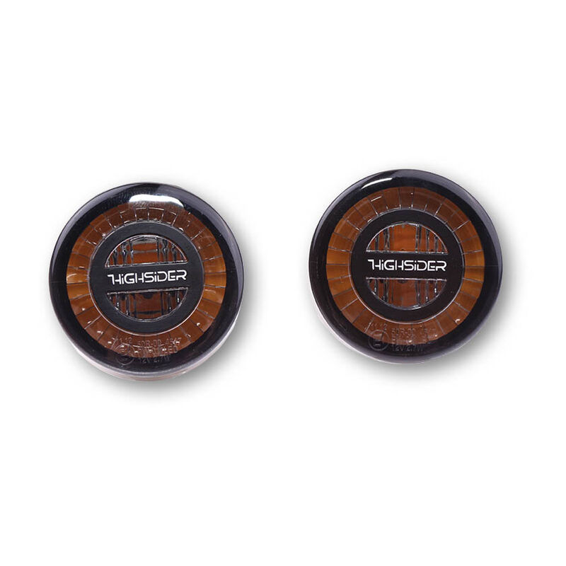 HIGHSIDER LED BLINKER ROCKET SCHWARZBei dieser innovativen Lichttechnik sind im Zentrum 6 sehr helle SMD LEDs verbaut die eine extrem kleine Bauform ermöglichen. Der äussere Ring hingegen besteht aus der neuen COB Technologie (Chip On Board). Durch die neue LED Chipeinbettung für Hochleistungs-LED erreicht man eine sehr hohe Leuchtdichte bei derzeit bestmöglicher Effizienz und Lebensdauer. So können zudem höhere Lichtwerte als bei herkömmlichen LEDs erzielt werden. Diese Kombination wird mit einem schwarz-eloxierten Aluring geliefert, der über den Grundkörper passt. MASSE: * A1: 18mm * A2: 15mm * D1: 45mm * D2: 43mm * Befestigungsbolzen: M8 x 1.25mm, Länge: 18mm LIEFERUMFANG: 1 Paar, E-geprüft für vorne und hinten HINWEIS: Die Kombination kann ohne Aluring flach eingebaut werden, so dass nur noch die Linse sichtbar ist. Dazu muss ein 40mm Loch gebohrt werden. Alternativ kann die Kombination mit dem Aluring auf z.B. eine Halteplatte am Fahrzeug montiert werden.