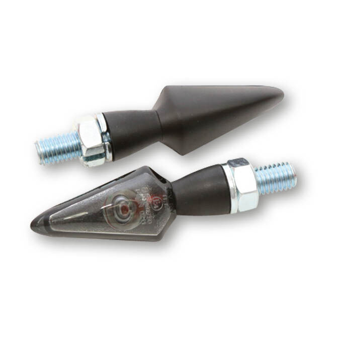 HIGHSIDER LED POWER BLINKER STREAM, SCHWARZPower-LED Blinker in einem schwarzen Aluminium-Gehäuse mit Gummistiel und getöntem Glas, E-geprüft. ABMESSUNGEN: * Breite: 54mm * Durchmesser: 13mm * Tiefe: 18mm * Gewindebolzen: M8 x 1.25mm LIEFERUMFANG: 1 Paar mit Vorwiderstand 1 W