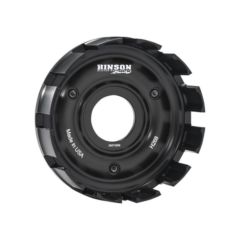 HINSON BILLETPROOF KUPPLUNGSKORB Dieser Kupplungskorb war das Erste Aftermarket-Teil in einer Factory Honda und wurde in Jeremy McGraths Rekord CR 250 verbaut. * Wird von den meisten grossen Werksteams und Spitzenfahrern verwendet * Verbessert die Leistung und Lebensdauer der Kupplung * Verbessert die Wärmeableitung * Präzisionsgefertigt und hartbeschichtet aus eloxierten T-6-Flugzeugaluminium nach Luft- und Raumfahrttoleranzen, mit einer fünffach höheren Verschleissbeständigkeit gegenüber dem originalen Kupplungskorb! * Ermöglicht es dem Kupplungspaket sich genauer zu drehen, wodurch im ausgekuppelten Zustand weniger Hitze entsteht. * Bei Verwendung mit weiteren Hinson Kupplungskomponenten werden lästige Kupplungsgeräusche vermieden