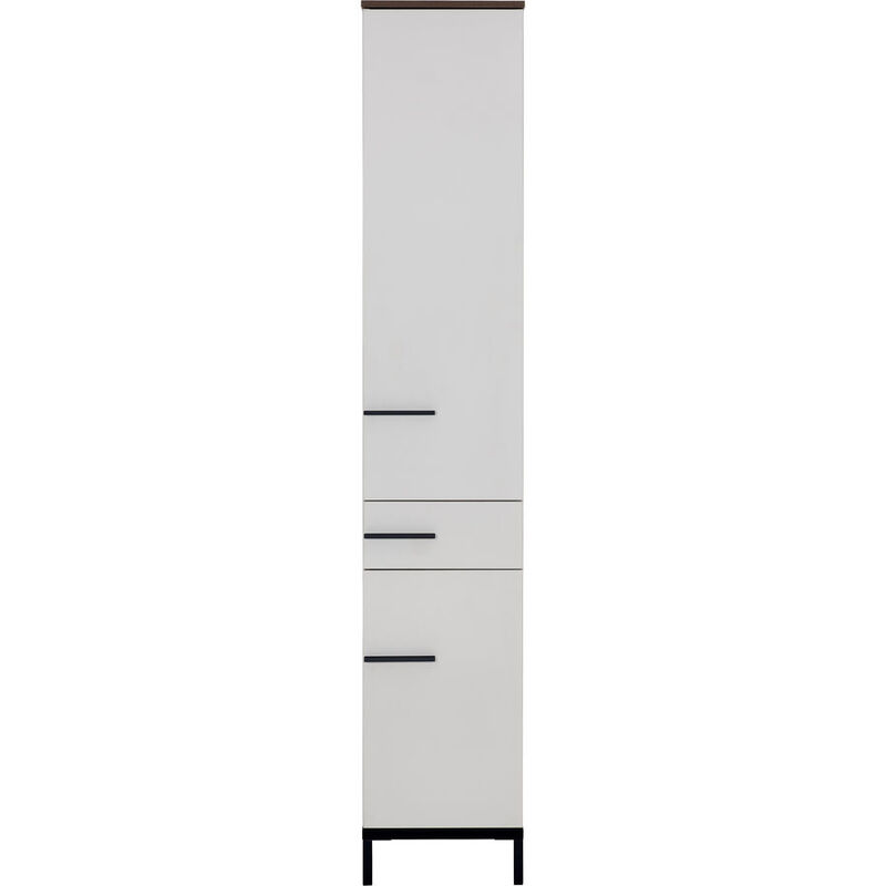 Hochschrank – Hochschrank Yonca – Holzwerkstoff – B 34 T 34 H 190 cm – Schublade belastbar bis 10kg. 2 Türen, 3 verstellbare Tablare belastbar bis 10kg, Unterboden bis 15kg belastbar, Oberboden nussb
