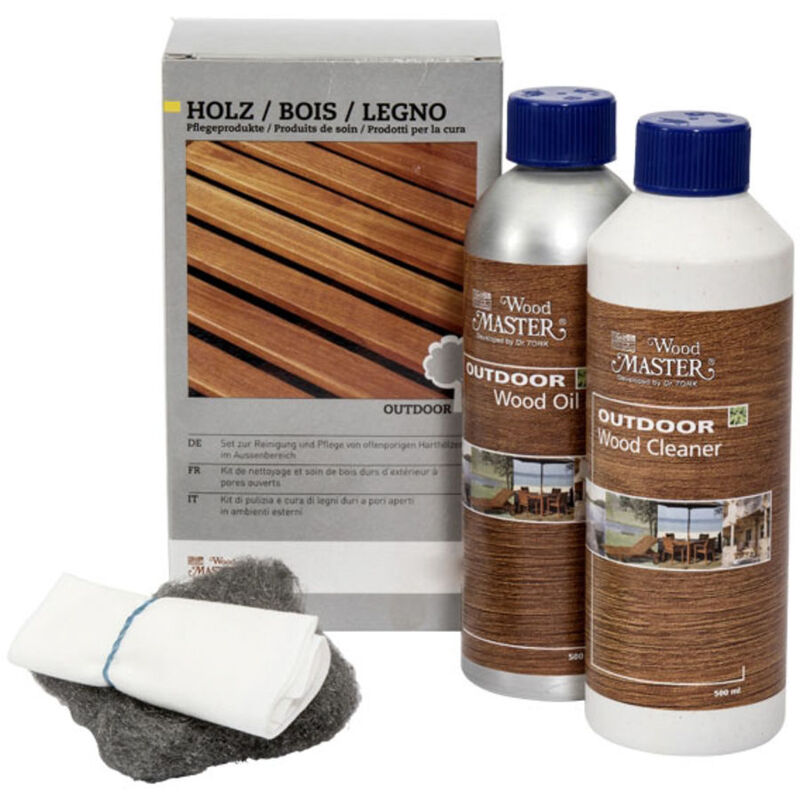 Set zur Reinigung und Pflegevon offenporigen Harthölzernim Aussenbereich