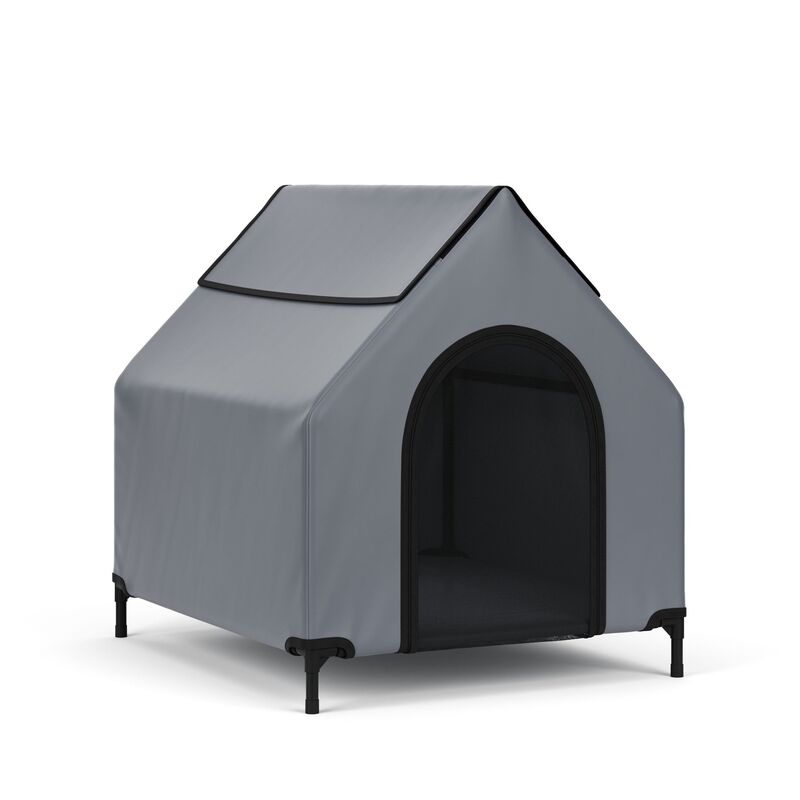 Diese anthrazitfarbene Hütte ist ein stilvoller Ruheplatz für deine Fellnase. Mit einer erhöhten Liegefläche eignet sie sich perfekt für den Garten, den Balkon oder Campingausflüge. Das Dach lässt sich teilweise aufrollen, wodurch ein Netzfenster für angenehme Luftzirkulation freigelegt wird. Die grosszügige Frontöffnung ermöglicht einen unkomplizierten Ein- und Ausstieg. Hergestellt aus pflegeleichtem Polyestergewebe und wasserdichter PVC-Beschichtung ist sie sowohl für den Innen- als auch den Aussenbereich geeignet. Bestell dir jetzt diesen exklusiven Rückzugsort für deinen treuen Begleiter!
