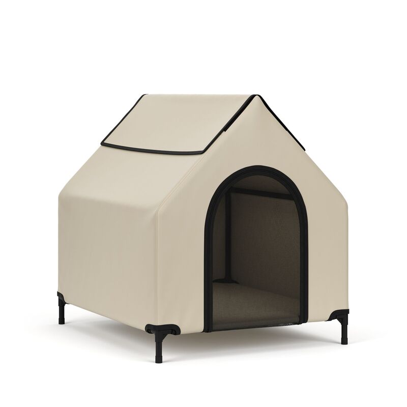 Diese gemütliche Hütte in warmen Beige bietet deinem Vierbeiner einen erstklassigen Rückzugsort zum Ausruhen und Entspannen. Die erhöhte Liegefläche eignet sich perfekt für den Garten, die Terrasse und Campingausflüge. Das einfach aufrollbare Dach sorgt dank des Netzfensters für eine angenehme Luftzirkulation. Der grosszügige Ein- und Ausstieg durch die Frontöffnung ermöglicht deinem Liebling mühelos Zugang. Hergestellt aus pflegeleichtem und robustem Polyestergewebe mit wasserdichter PVC-Beschichtung, ist diese Hütte ideal für den Innen- und Aussenbereich geeignet. Hol dir jetzt diese hübsche Hütte für deine Fellnase!