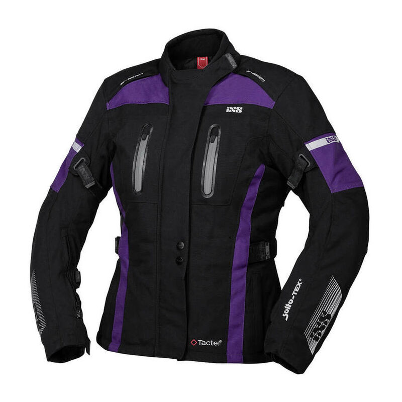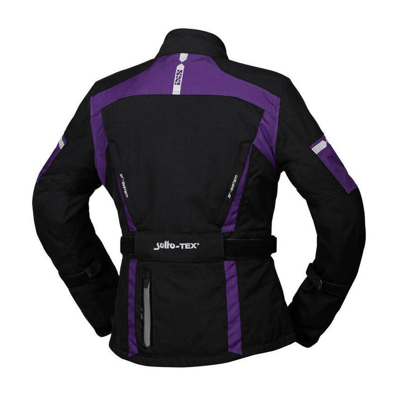 WASSERDICHTE DAMEN TEXTILJACKE AUS TACTEL BACKYARD RACING DETAILS: * solto-TEX 2-Lagen Z-Liner Membran * Austrennbares Thermofutter * Atmungsaktives Netzfutter mit Wassersperre für optimales Körperklima * 3D-Mesh Rückenportektorentasche für verbesserten Feuchtigkeitstransport * Weitenverstellung am Oberarm, Ellbogen und am Ärmelbund * Soft Armabschluss für besten Handschuh Tragekomfort * Weitenverstellung in der Taille mit Klett * Weitenverstellung am Jackensaum mit elastischem Kordelzug * 5 Aussentaschen * 2 Innentaschen im fixen Netzfutter und 2 Napoleontaschen * 2-Wege Reissverschluss am Ärmelbund für eine effiziente Belüftung * 6 Ventilationsöffnungen * Reflektierende Transferdrucke * Rundumlaufender Verbindungsreissverschluss * Höhenverstellbare Ellbogenprotektoren * Jacke Bauart geprüft nach FprEN17092-3:2019 (AA) * Schulter- und Ellbogenprotektoren impacTec TP-01, Bauart geprüft nach EN 1621-1:2012, Level 2 * Rückenprotektor impacTec TP-06, Bauart geprüft nach EN 1621-2:2014, Level 2 PASSEND DAZU: Obermaterial: 100% Polyamid Obermaterial violett: 100% Polyester Futter: 100% Polyester Membranträger: 100% Polyester Thermofutter: 100% Polyester solto-TEX Membran Polyurethan laminiert IXS_UPLOAD21,igs,ix,ixxs,iggs,ixss,i-xs,soltotex,solto tex,solto-tex,membrane,solto membrane,membrane,atmungsaktiv,atmungsaktiv,wasserfest,wasserdicht,winddicht,winddabweisend,water proof,wind proof,breathable,thermofutter,impermeabile,étanche,résistant au vent,antivento,traspirante,respirable,abbigliamento femminile,abiti donna,abiti donne,women gear,woman gear,womans gear,woman,frauenbekleidung,frauen ausrüstung,für frauen,girls gear,frauen bike,frauen moto,femmes moto,vetements femmes,motorradbekleidung frauen,motorradausrüstung frauen,textiljacke,motorradjacke,strassenjacke,töffjacke,töfftextil,textil motorradjacke,textil oberteil,kombijacke,veste textil,textile jacket,giacca tessile,giacca moto,veste moto,jagge töff,stoffjacke,töff stoff