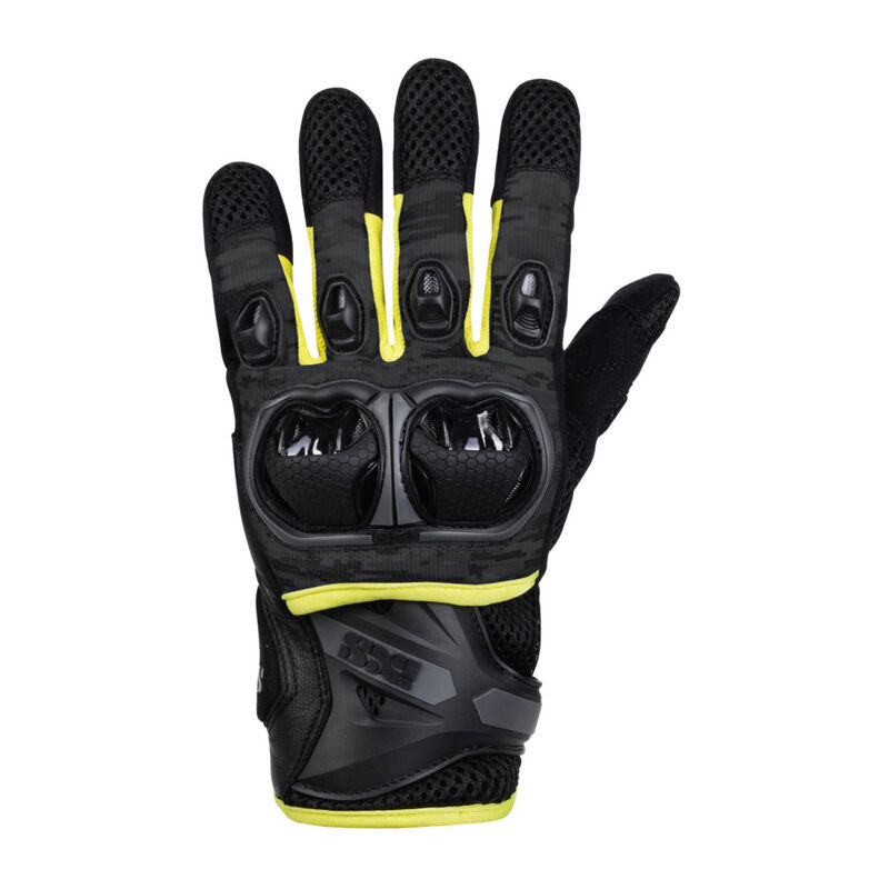 Trendiger, sportlicher Handschuh aus Elasthan mit Camo Print, Amara und 3-D Mesh TRENDIGER, SPORTLICHER HANDSCHUH AUS ELASTHAN MIT CAMO PRINT, AMARA UND 3-D MESH * Leichtes Textil-Innenfutter * Innenhand aus Amara mit Amara Aufdoppelung * Handballen mit Lederaufdoppelung und Polsterung * Finger aus 3D Mesh und Elasthan mit TPR Protektoren * Seitenwände aus Elasthan für mehr Komfort * Daumen in 3-D Mesh mit Amara Aufdoppleung * TPU Knöchelprotektor * TPR Formteil am Stulpen * Weitenverstellbarer Stulpen mit Klettverschluss * Sicherheit: erfüllt die Prüfnorm EN13594:2015 Obermaterial Leder: Ziegenleder, Obermaterial Textil: 100% Polyester Innenhand/Finger: 70% Polyester, 30% Polyamid, Obermaterial Stretch: 82% Polyester, 18% Elasthan, Futter: 100% Polyester Knöchelschutz: Thermoplastisches Polyurethan Enthält nichttextile Teile tierischen Ursprungs igs,ix,ixxs,iggs,ixss,i-xs,leder verstärkt,leather supported,stoff mit leder,stoff und leder,textil und leder,töff handschuhe,töffhändsche,moto gloves,strassenhandschuhe,motorrad handschuhe,guanto moto, gants moto,sommer töff,ete moto,estate moto,motorrad sommer,hand sommer,summerhändsche,BY_HISTMO