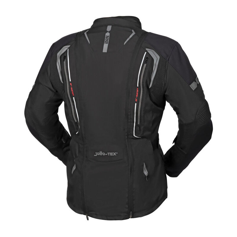 Wasserdichte Textiljacke mit größenregulierendem System WASSERDICHTE TEXTILJACKE MIT GRÖßENREGULIERENDEM SYSTEM * solto-TEX 2-Lagen Z-Liner Membran * Austrennbares Thermofutter * Atmungsaktives Netzfutter mit Wassersperre für optimales Körperklima * 3D-Mesh Rückenportektorentasche für verbesserten Feuchtigkeitstransport * Stufenloses, größenregulierendes System * mit umlaufenden Reißverschlüssen * Weitenverstellung am Ellbogen, Oberarm und am Ärmelbund * Soft Armabschluss für besten Handschuh Tragekomfort * Weitenverstellung an Taille mit Klett * Weitenverstellung am Jackensaum mit elastischem Kordelzug * 4 Außentaschen * 2 Innentaschen im fixen Netzfutter und 2 Napoleontaschen * 2-Wege Reißverschluss am Ärmelbund für eine effiziente Belüftung * 6 Ventilationsöffnungen * Reflektierende Transferdrucke * Rundumlaufender Verbindungsreißverschluss * Höhenverstellbare Ellbogenprotektoren * Schulter- und Ellbogenprotektoren impacTec TP-02, Bauart geprüft nach EN 1621-1:2012, Level 2 * Rückenprotektor impacTec TP-06,Bauart geprüft nach EN 1621-2:2014, Level 2 Obermaterial: 100% Polyester Schulter/Ellbogen: 100% Polyamid Futter: 100% Polyester Membranträger: 100% Polyester Thermofutter: 100% Polyester solto-TEX Membran 100% Polyurethan laminiert igs,ix,ixxs,iggs,ixss,i-xs,soltotex,solto tex,solto-tex,membrane,solto membrane,membrane,atmungsaktiv,atmungsaktiv,wasserfest,wasserdicht,winddicht,winddabweisend,water proof,wind proof,breathable,thermofutter,impermeabile,étanche,résistant au vent,antivento,traspirante,respirable,textiljacke,motorradjacke,strassenjacke,töffjacke,töfftextil,textil motorradjacke,textil oberteil,kombijacke,veste textil,textile jacket,giacca tessile,giacca moto,veste moto,jagge töff,stoffjacke,töff stoff