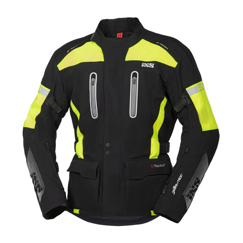 Wasserdichte Textiljacke aus Tactel WASSERDICHTE TEXTILJACKE AUS TACTEL * solto-TEX 2-Lagen Z-Liner Membran * Austrennbares Thermofutter * Atmungsaktives Netzfutter mit Wassersperre für optimales Körperklima * 3D-Mesh Rückenportektorentasche für verbesserten Feuchtigkeitstransport * Weitenverstellung am Oberarm, Ellbogen und am Ärmelbund * Soft Armabschluss für besten Handschuh Tragekomfort * Weitenverstellung in der Taille mit Klett * Weitenverstellung am Jackensaum mit elastischem Kordelzug * 7 Außentaschen * 2 Innentaschen im fixen Netzfutter und 2 Napoleontaschen * 2-Wege Reißverschluss am Ärmelbund für eine effiziente Belüftung * 6 Ventilationsöffnungen * Reflektierende Transferdrucke * Rundumlaufender Verbindungsreißverschluss * Höhenverstellbare Ellbogenprotektoren * Schulter- und Ellbogenprotektoren impacTec TP-02, * Bauart geprüft nach EN 1621-1:2012, Level 2 * Rückenprotektor impacTec TP-06, Bauart geprüft nach EN 1621-2:2014, Level 2 PASSEND DAZU: Tour Hose Puerto-ST (X65318) Obermaterial: 100% Polyamid, Obermaterial neongelb: 100% PolyesterFutter: 100% Polyester Membranträger: 100% Polyester Thermofutter: 100% Polyester solto-TEX Membran 100% Polyurethan laminiert igs,ix,ixxs,iggs,ixss,i-xs,soltotex,solto tex,solto-tex,membrane,solto membrane,membrane,atmungsaktiv,atmungsaktiv,wasserfest,wasserdicht,winddicht,winddabweisend,water proof,wind proof,breathable,thermofutter,impermeabile,étanche,résistant au vent,antivento,traspirante,respirable,textiljacke,motorradjacke,strassenjacke,töffjacke,töfftextil,textil motorradjacke,textil oberteil,kombijacke,veste textil,textile jacket,giacca tessile,giacca moto,veste moto,jagge töff,stoffjacke,töff stoff