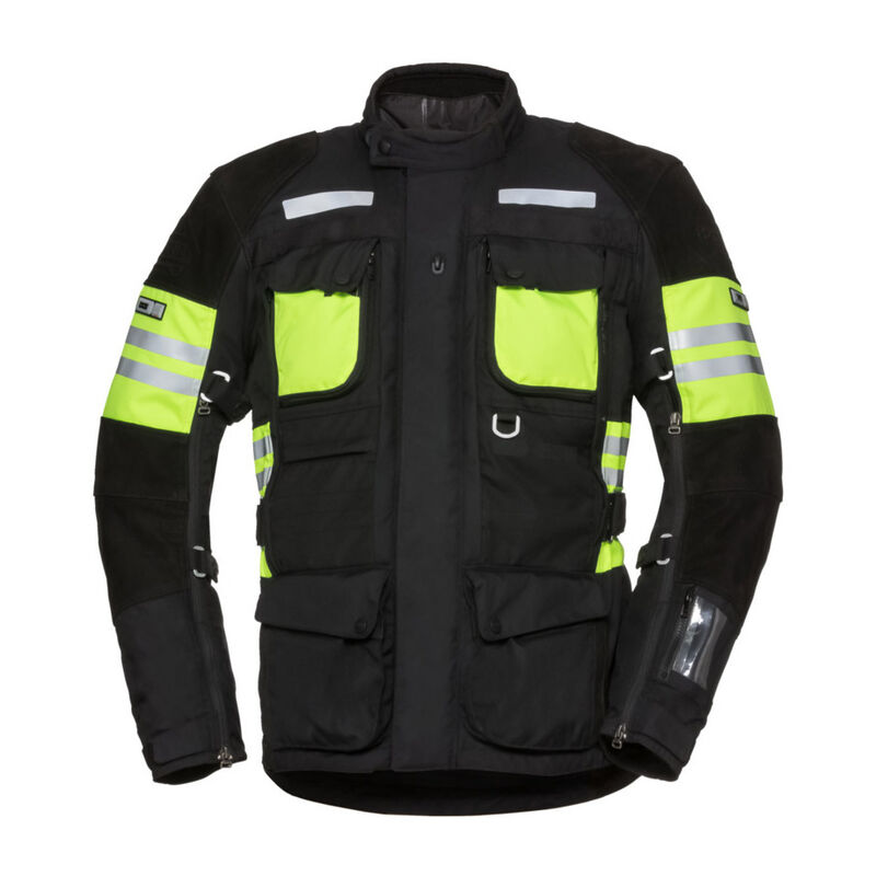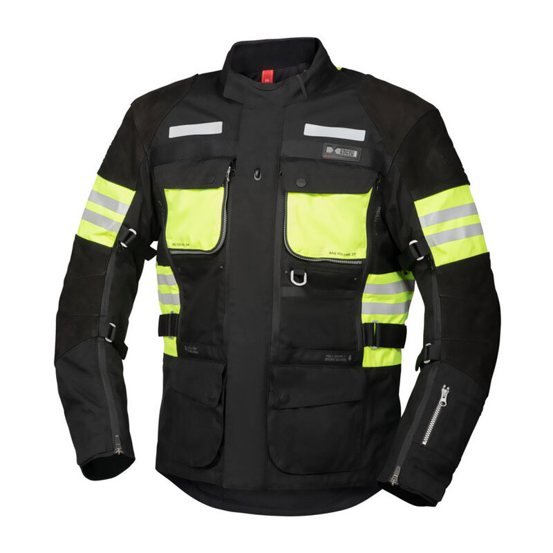 Jacke aus 500D AIRDURA mit Lederaufdoppelung JACKE AUS 500D AIRDURA MIT LEDERAUFDOPPELUNG * Austrennbare solto-TEX Membrane (X58512) * Antiseptisches Polyester-Netzfutter mit Wassersperre * Ellbogen und Oberarm weitenverstellbar * Kleine Netztasche am Ärmelstulpen * Taillen- und Hüftversteller * 7 Aussen- und 1 Napoleontasche * 3 Innentaschen im Netzfutter * Grossflächiges Belüftungssystem im Brust- und Rückenbereich mit diversen Lufteinlässen und Einstellmöglichkeiten * Reflektierende Transferdrucke * Abnehmbarer Verbindungsreissverschluss * Schulter- und Ellbogenprotektoren SAFETECH 421/520, Bauart geprüft nach EN 1621-1:2012, Level 2 * Rückenprotektor PROTECT 851, Bauart geprüft nach EN 1621-2:2014, Level 2 Obermaterial: 100% Polyamid Obermaterial neon gelb: 100% Polyester Schulter/Ellbogen: Büffelleder Futter: 100% Polyester Membranträger: 100% Polyester Enthält nichttextile Teile tierischen Ursprungs solto-TEX Membrane 100% Polyurethan laminiert igs,ix,ixxs,iggs,ixss,i-xs,leder verstärkt,leather supported,stoff mit leder,stoff und leder,textil und leder,soltotex,solto tex,solto-tex,membrane,solto membrane,membrane,atmungsaktiv,atmungsaktiv,wasserfest,wasserdicht,winddicht,winddabweisend,water proof,wind proof,breathable,thermofutter,impermeabile,étanche,résistant au vent,antivento,traspirante,respirable,textiljacke,motorradjacke,strassenjacke,töffjacke,töfftextil,textil motorradjacke,textil oberteil,kombijacke,veste textil,textile jacket,giacca tessile,giacca moto,veste moto,jagge töff,stoffjacke,töff stoff,BY_FHUIEPA,BY_WDBFMFS