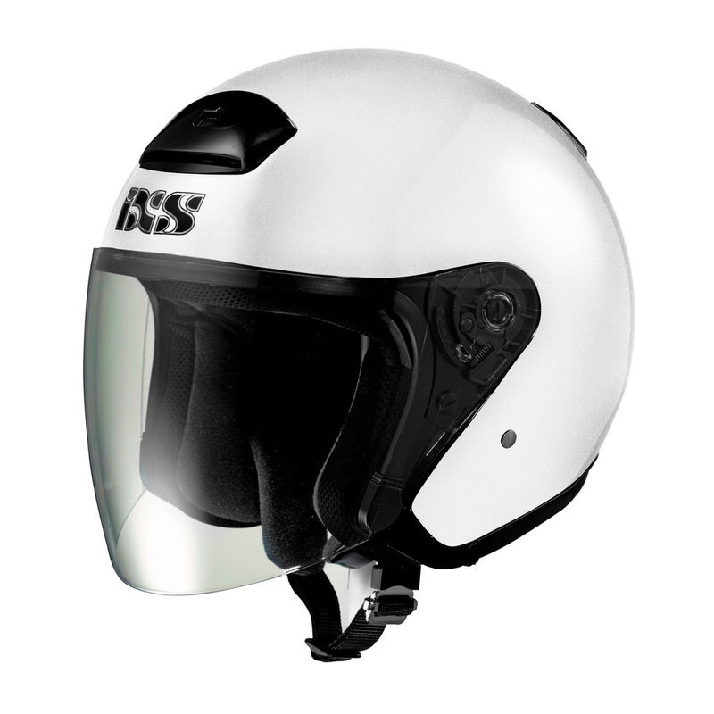 Jethelm aus Polycarbonat * Stirnbelüftung * Klares, kratzfestes Schnellwechselvisier * Ratschenverschluss * Austrennbares, hochwertiges Innenfutter * Klarlackversiegelt (weiss 001, schwarz 003) * Neue Mattlackierungstechnologie – NMT (matt schwarz 333) Futter: 100% Polyester Jethelm,rollerhelm,chathelm,tschett-helm,casque,casco,offener helm,töfflihelm,leichter helm,vespahelm,mofahelm,scooterhelm,ixs helm,ix helm,igs helm,x helm
