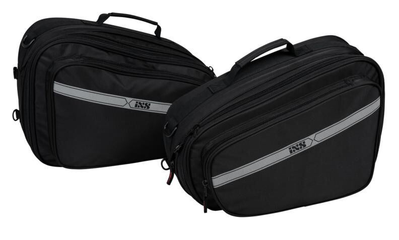 iXS Satteltaschen Set – schwarz Satteltaschen aus 100% Polyester Tragegriff und Schultergurt Erweiterbar 2 Aussentaschen 8 Spannbänder Regenhaube Abmessungen 48 x 16 x 33 cm Obermaterial: 100% Polyester, Polyurethan beschichtet
