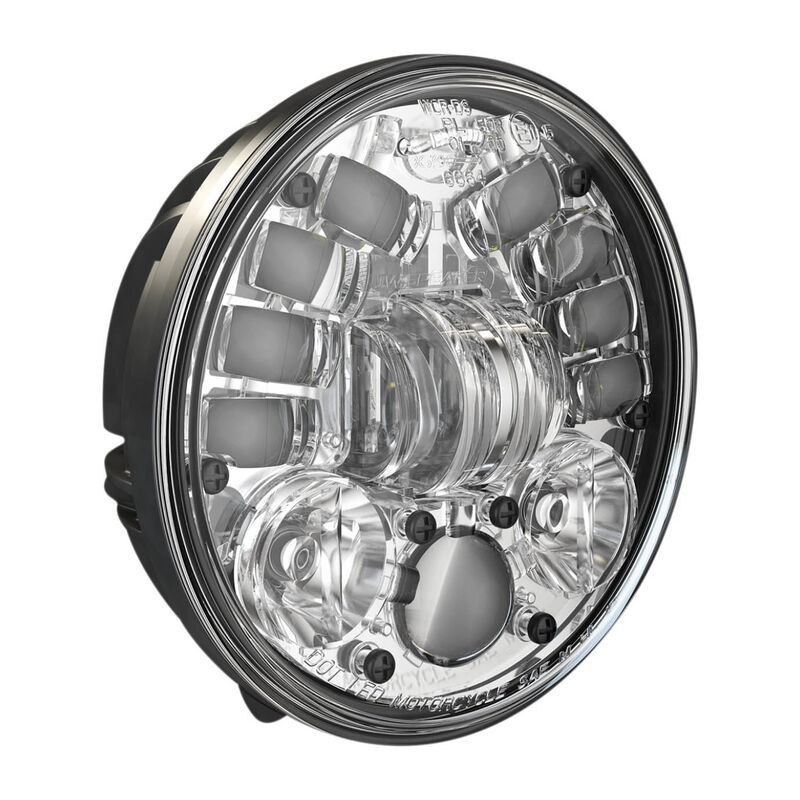 5.75 Zoll (16.4 cm) adaptiver LED-Scheinwerfer 8691 mit Kurvenlicht von J.W. Speaker Die neuen adaptiven Scheinwerfer der Serie Adaptive2 wurden so verbessert, dass nun das Kurvenlicht neben dem Abblendlicht auch beim Fernlicht eingesetzt wird. So werden nun nicht nur dunkle Kurven perfekt ausgeleuchtet, sondern auch Objekte bis zu 450m Entfernung, um Ihnen eine sicherere und souveränere Fahrt zu ermöglichen. Der Scheinwerfer berechnet den Neigungswinkel in Echtzeit mithilfe proprietärer Technologie und integrierter Sensoren und richtet das Lichtfeld beim Neigen des Motorrads automatisch nach oben oder unten aus. Diese zusätzliche Beleuchtung füllt die Lücken, die herkömmliche Scheinwerfer nicht ausfüllen können. Dieser neue adaptive Scheinwerfer kombiniert innovative Abblendlichtoptik und ComfortLite-Fernlichtoptik, um eine klassenbeste Vordergrundausleuchtung und Licht bis über dem Horizont zu bieten, was den Fahrkomfort und die Sicherheit des Fahrers dramatisch verbessert. * Scheinwerfer mit Kurvenlicht erkennen Schräglagen bis 30° und steuern das Licht dynamisch, um keine Bereiche im Dunkeln zu lassen * Dieses einzigartige Design verzichtet auf ein Scheinwerfergehäuse * Sockelhalterung passend für die meisten 19 mm (3/4 Zoll) Scheinwerfer-Montageblöcke * Dual-Burn Technologie ermöglicht dem Fahrer gleichzeitig die Ausbreitung des Abblendlichts und die Durchschlagskraft des Fernlichts zu nutzen * Überragende Sichtverhältnisse, Sicherheit und Haltbarkeit * 1600 Lumen (Fernlicht), 1050 Lumen (Abblendlicht) * Mit Strassenzulassung (DOT/ECE-konform) * Ausführung mit innerer chrom Blende * Made in the U.S.A. Unter Downloads finden Sie das Datenblatt mit allen technischen Angaben zu dem Artikel. J.W. Speaker Scheinwerfer können bei den meisten Harley Davidson Motorräder einfach per Plug-and-Play ausgetauscht werden. J.W. Speaker bietet jedoch eine Vielzahl von Umbausätzen für andere Motorräder mit runden Scheinwerfer an. FALLS SIE UNSICHER SIND OB DER SCHEINWERFER AN IHREM MOTORRAD MONTIERT WERDEN KANN, KONTAKTIEREN SIE UNS – WIR HELFEN IHNEN DAS RICHTIGE PRODUKT ZU FINDEN!