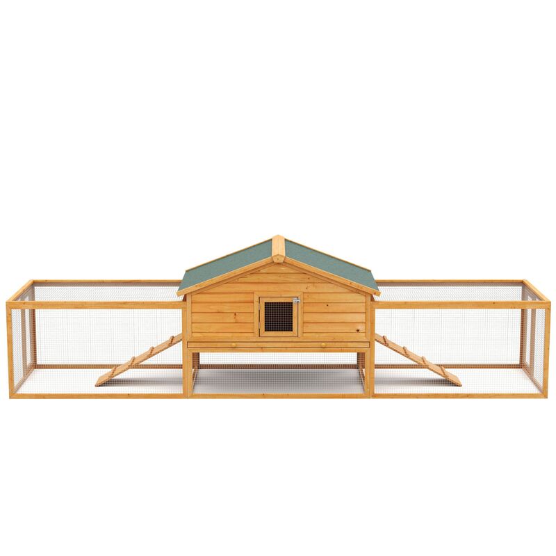 Das Gehege bietet eine mit Drahtgeflecht überdachte Auslauffläche für Kaninchen und Meerschweinchen. Über rutschfreie Rampen können sich die Tiere in den erhöhten Stall zurückziehen. Dieser schützt vor Wind und Regen und bietet Sicherheit vor Raubtieren. Die langlebige Holzkonstruktion mit Bitumendach verfügt über einen herausziehbaren Zwischenboden und ist somit einfach zu reinigen. Bieten Sie Ihren Lieblingen Platz zum Herumrennen mit diesem attraktiven Hasenstall!