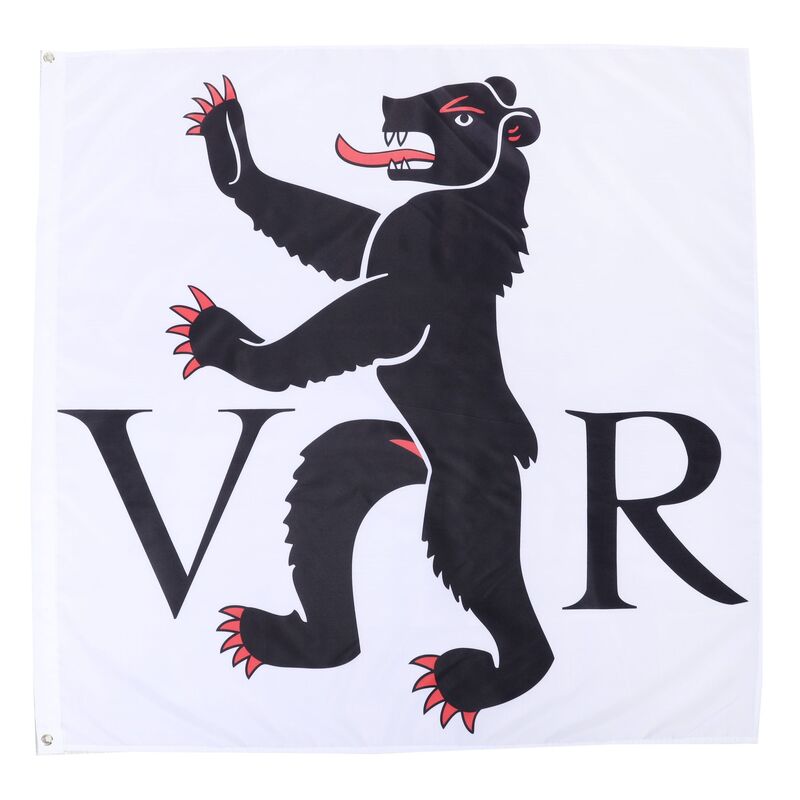 “In Silber ein aufrechter, rot gezungter und bewehrter schwarzer Bär, unten rechts begleitet von einem schwarzen Grossbuchstaben V, links von einem ebensolchen R“