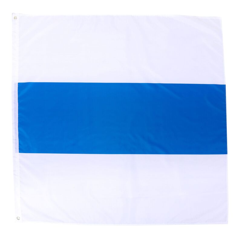 "In Weiss ein blauer Balken"