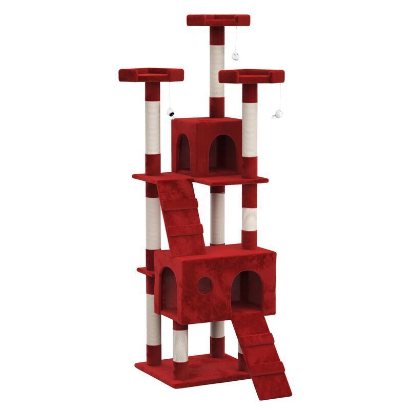 Auf dem Katzenkratzbaum MAX in frechem Rot wird deinem Stubentiger garantiert nicht langweilig! Die Sisalstämme, Spielzeugmäuse und Leitern bieten Kletter- und Spielspass und ermöglichen eine essentielle Krallenpflege. Hat deine Katze genug, kann sie sich in den Häuschen oder auf den Aussichtsplattformen entspannen und schlafen. Die Verarbeitung aus Plüsch bietet Komfort und ist pflegeleicht und langlebig. Kaufe dir jetzt einen Katzenbaum für deine Haustiere und mache ihnen eine Freude!