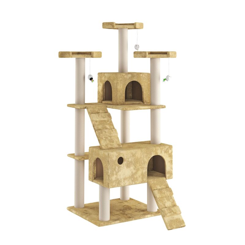 - Verschiedene Etagen, Sitz- und Liegeplätze, Höhlen und Kratzstämme