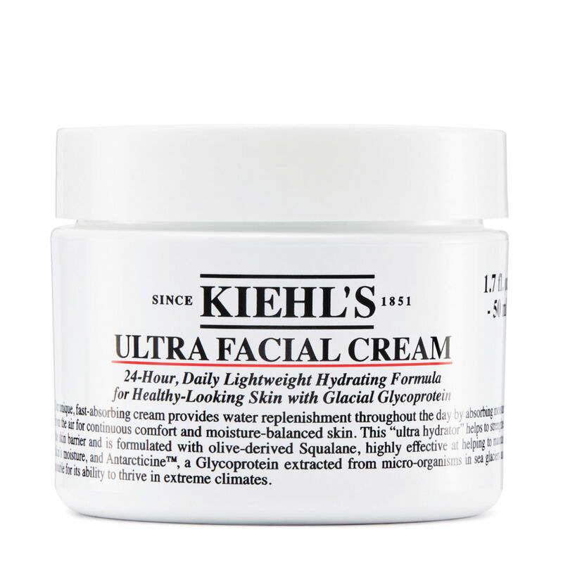 Kiehl’s Ultra Facial Cream Gesichtscreme mit 24h Feuchtigkeitsversorgung für alle Hauttypen Kiehl’s Ultra Facial Cream: eine cremige, leichte Gesichtscreme mit glazialem Glykoprotein und Squalan aus Oliven, die 24h langanhaltende Feuchtigkeit spendet. • Versorgt die Haut sichtbar 24h mit Feuchtigkeit. • Sorgt für einen geschmeidigeren Teint und natürlich strahlende Haut. • Verbessert strapazierte Haut und feine Trockenheitsfältchen. • Formuliert mit glazialem Glykoprotein und Squalan. • Für alle Hauttypen geeignet einschliesslich empfindlicher Haut. Die Feuchtigkeitscreme Ultra Facial Cream von Kiehl’s ist mit glazialem Glykoprotein und Squalan aus Oliven angereichert. Beim Auftragen sorgt diese cremige, leichte Feuchtigkeitscreme für einen strahlenden Teint. Die Gesichtscreme von Kiehl’s spendet wissenschaftlich getestet und bewiesen 24-Stunden lang 2.3 Mal mehr intensive Feuchtigkeit für eine gesunde, strahlende Haut. Inhaltsstoffe: • Glaziales Glykoprotein Die Feuchtigkeitspflege von Kiehl’s wird aus glazialem Glykoprotein, welches aus Meeresgletschern gewonnen wird und für intensive und tiefenwirksame Feuchtigkeitsversorgung bekannt ist, formuliert. • Squalan Squalan wird aus Oliven gewonnen und ist ein hoch raffiniertes Öl, welches die Kiehl’s Feuchtigkeitscreme Ultra Facial Cream dazu befähigt, die Feuchtigkeitsbarriere der Haut intensiv zu stärken. Anwendung: Nach dem Gesichtswasser morgens und abends die Gesichtscreme Ultra Facial Cream von Kiehl’s auf die gereinigte Gesichtshaut auftragen. Kiehl’s Empfehlungen: Für intensiv versorgte Haut probieren Sie die Kiehl’s Ultra Facial Kollektion einschliesslich der Gesichtsreinigung Ultra Facial Cleanser, dem Gesichtswasser Ultra Facial Toner und der über Nacht intensiv mit Feuchtigkeit versorgenden Gesichtsmaske Ultra Facial Overnight Hydrating Masque.