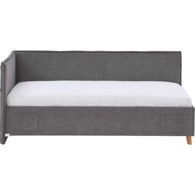 Kinderbett mit Rückenteil – Kinderbett Falia – Stoff – B 140 T 200 H 42 cm – Stellmass: 153x215x90, Fusshöhe: 10, Einlegetiefe: 15 – ohne Bettinhalt