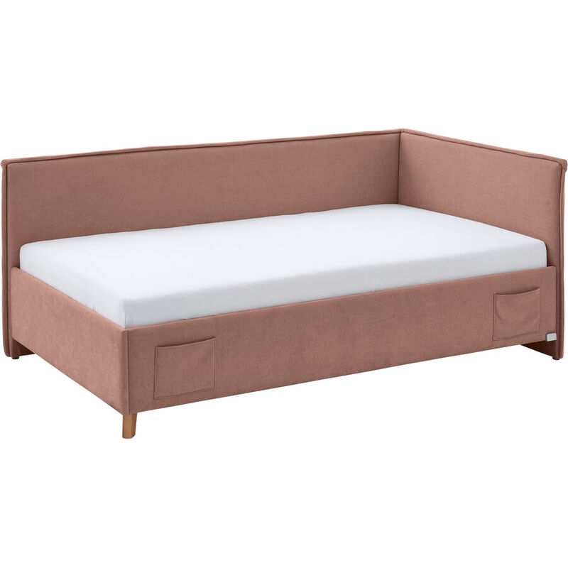 Kinderbett mit Bettkasten und Rückenteil – Kinderbett Falia – Stoff – B 140 T 200 H 42 cm – Stellmass: 153x215x90, Fusshöhe: 10, Einlegetiefe: 15 – inkl. Einlegerahmen, ohne Matratze